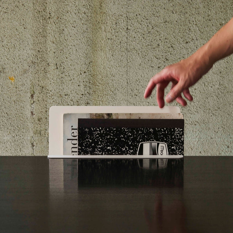 そして、あえて、上部が少しだけ「はみ出る」ように横幅を設計しているのもポイント。完全に隠れてしまうと、忘れてしまう。 でも、少し頭が出ているだけで、「あ、あれ送らなきゃ」とすぐに認識でき、指をかけてサッと取り出せる。 隠す収納ではなく、仕事の流れを止めないための「使える収納」です。