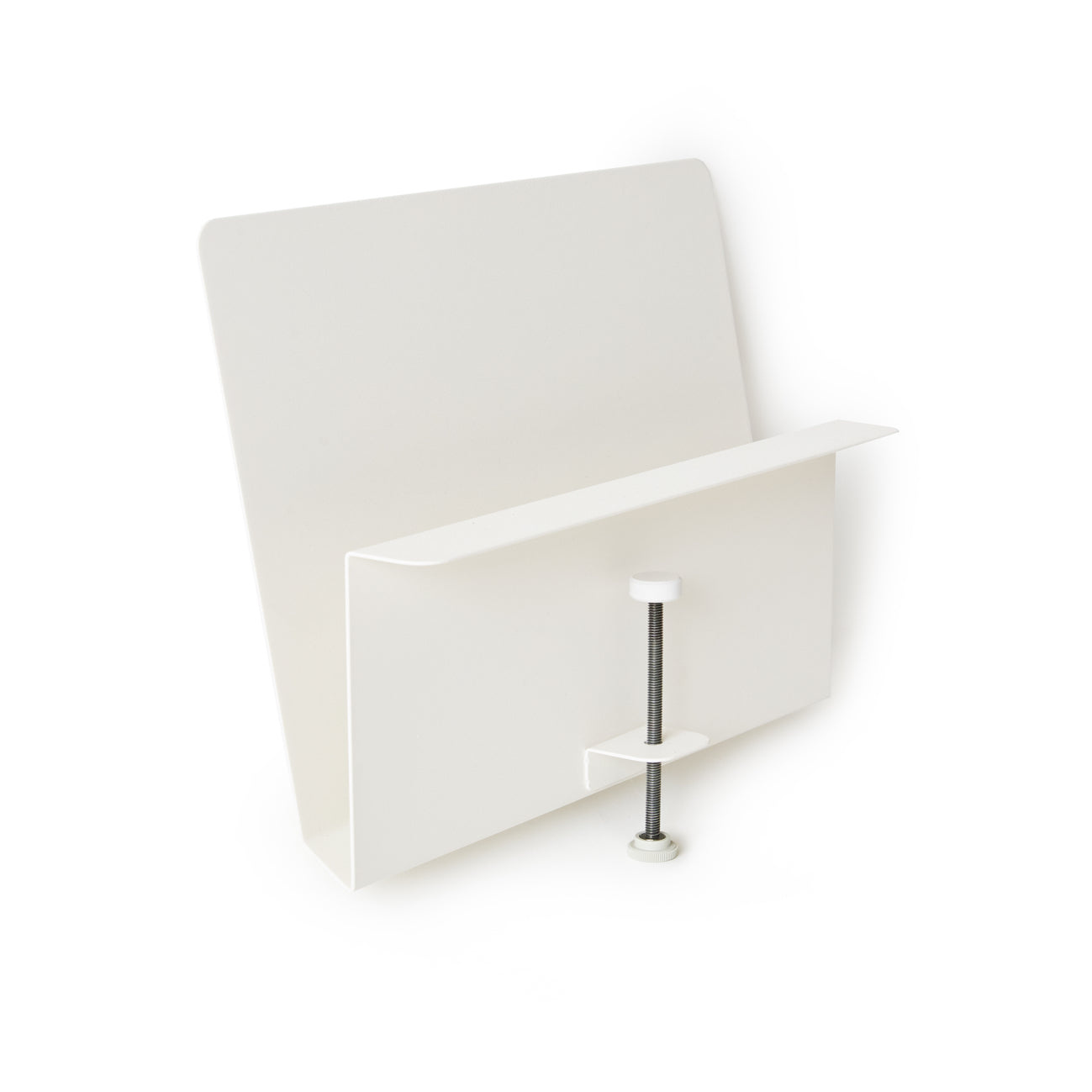 ネジ穴も工具も不要。 デスクの端にスッと差し込み、ハンドルを回すだけ。 まるで体の一部になったかのように、デスクと一体化します。